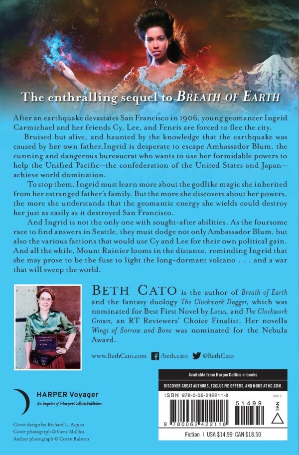 When an earthquake devastates San Francisco in an alternate 1906, the influx of geomantic energy nearly consumes Ingrid Carmichael. Bruised but alive, the young geomancer flees the city with her friends, Cy, Lee, and Fenris. She is desperate to escape Ambassador Blum, the cunning and dangerous bureaucrat who wants to use Ingrid’s formidable powers to help the Unified Pacific—the confederation of the United States and Japan—achieve world domination. To stop them, Ingrid must learn more about the god-like magic she inherited from her estranged father—the man who set off the quake that obliterated San Francisco.