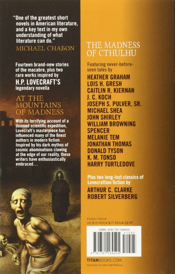 Sixteen stories inspired by the 20th century’s great master of horror, H.P. Lovecraft, and his acknowledged masterpiece, At the Mountains of Madness, in which an expedition to the desolation of Antarctica discovers evidence of an ancient ruin built by horrific creatures at first thought long-dead, until death strikes the group. All but two of the stories are original to this edition, and those reprints are long-lost works by science fiction masters Arthur C. Clarke and Robert Silverberg.